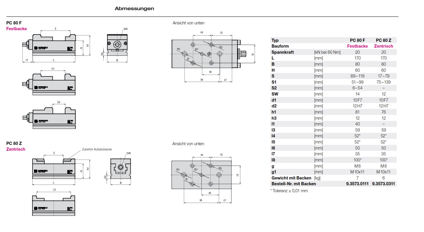 PC 80 F (vaste bek) eb PC 80 Z (centrisch):