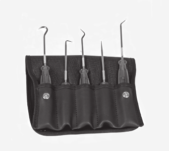 Voor demontage van afdichtingen. Bevat 5 speciale gereedschapjes met diverse haak-vormen.